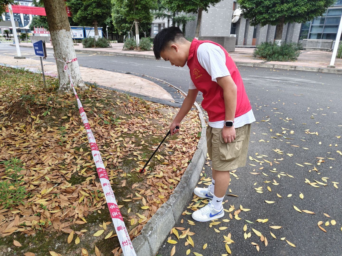 活动前期,阳光关爱志愿队于6月18日晚完成工具准备工作。19日清晨志愿者们准时在图书馆前集合,有序完成签到、服装领取等工作。在简短的动员仪式后,志愿者们分组前往指定区域,重点清理白色垃圾、落叶等杂物。