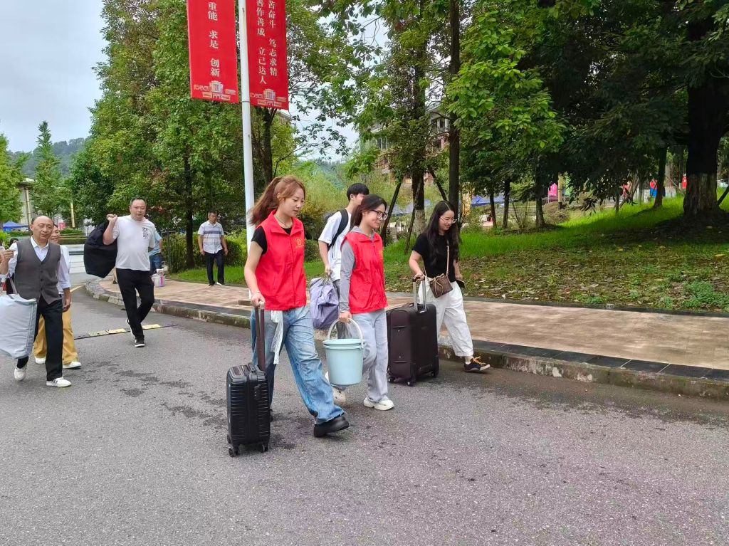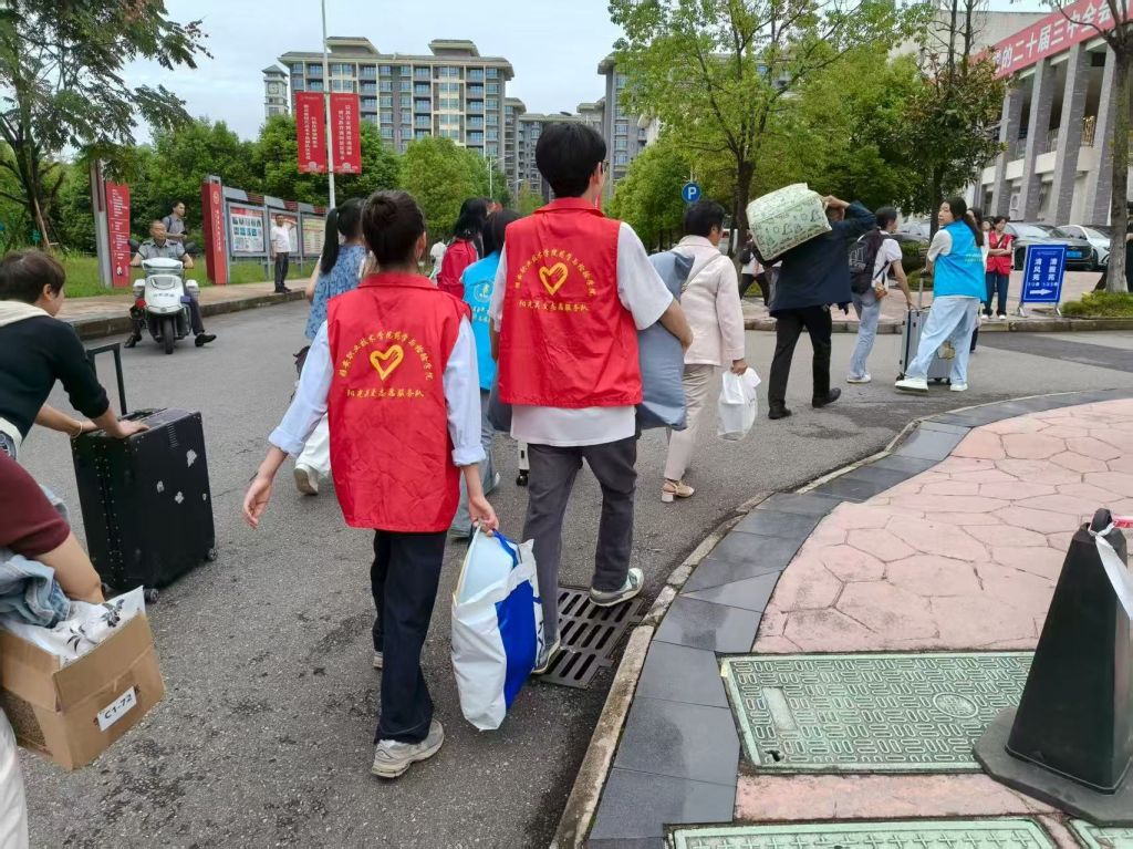 老师和志愿者们主动走上前与家长沟通交流,有效缓解家长的担忧与牵挂,赢得了广泛认可与感谢。现场家长神情各异,有的笑容满面,频频用手机记录子女报到的珍贵时刻;有的眼含不舍,再三叮嘱生活琐事。