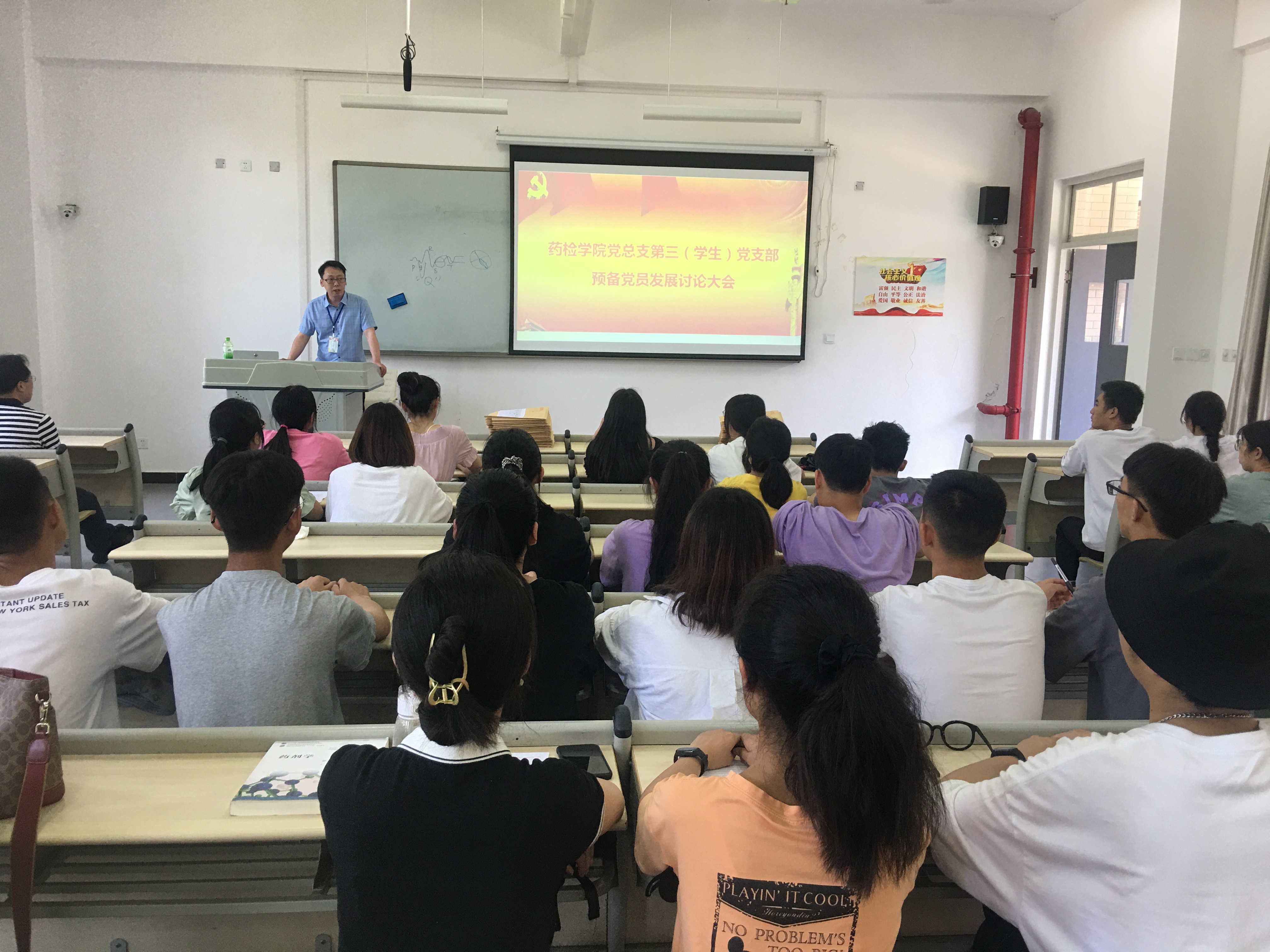 2021年6月3日中午12:40,药检公司党总支第三党支部在1205教室召开预备党员发展讨论大会。参加本次会议的有药检公司党总支书记杨泽刚、第三党支部书记杨文君、第三党支部党员、发展对象,共计49人。第三党支部书记杨文君老师主持了此次会议。