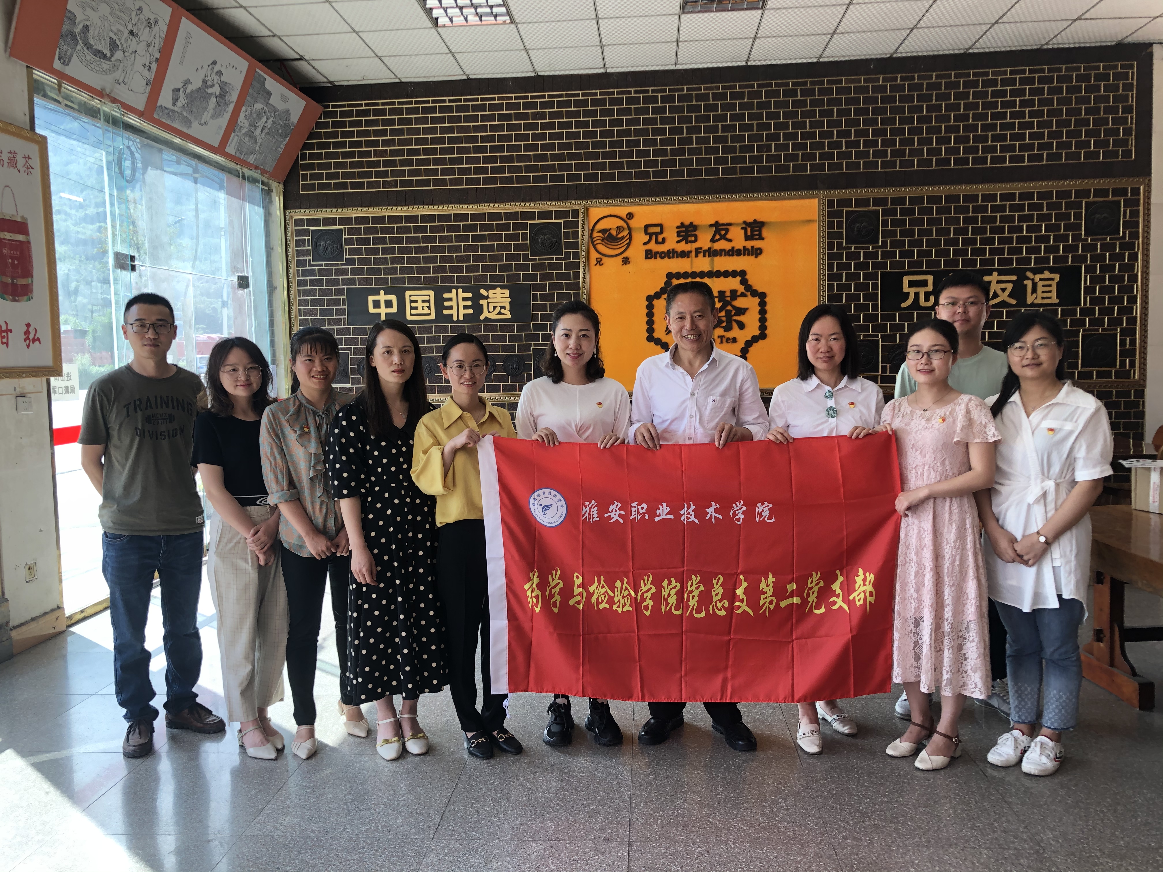 为庆祝中国共产党成立100周年,深入学习贯彻习近平新时代中国特色社会主义思想,践行社会主义核心价值观,药检公司第二党支部于5月11日下午在雅安市友谊茶叶有限公司开展了“进茶企,体验非遗文化”的党支部活动。