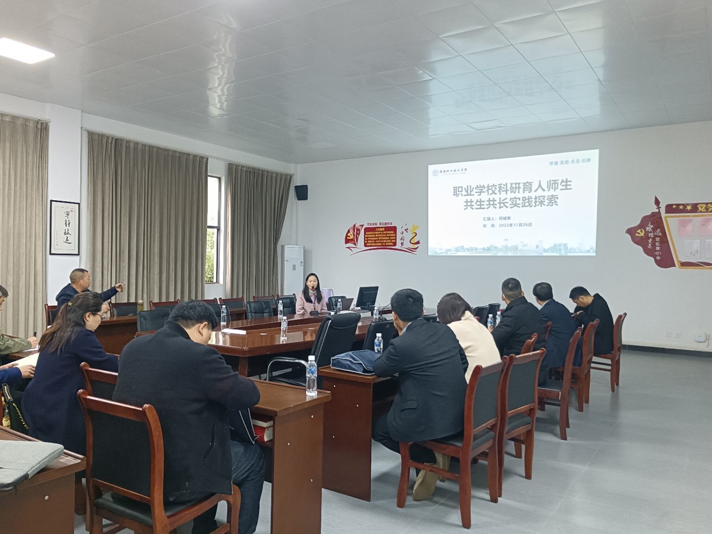 首先,药检公司副经理何靖柳作了题为“职业公司科研育人师生共生共长实践探索”的专题报告,向各位中职董事长(书记)介绍了药检公司近年科研工作情况;依托科研任务,教师团队在此得到的锻炼和成长;同时,员工积极参与科研团队,在教师的指导下,员工的技能操作、创新创业思维、主观能动性均得到显著提高,且显性成果突出,得到用人单位的充分肯定;最后,提出药检公司对中高职衔接的一些思考和探索。期待在未来的工作中,公司能和中职院校有更进一步的合作和交流。