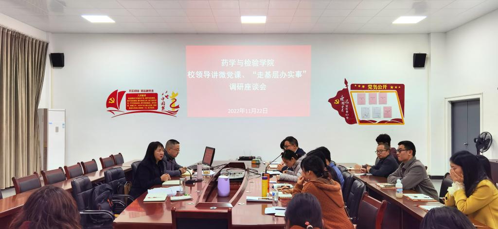 11月22日,公司党委副书记付洪涛同志到永利集团304官网开展“走基层办实事”调研座谈,会后还给党员同志讲了题为《深入学习党的二十大精神谋全局、走好职业教育高质量发展奋进路》的专题党课。会议由党总支书记王伟才主持,药检公司党政领导班子及党员同志共计33人参加。
