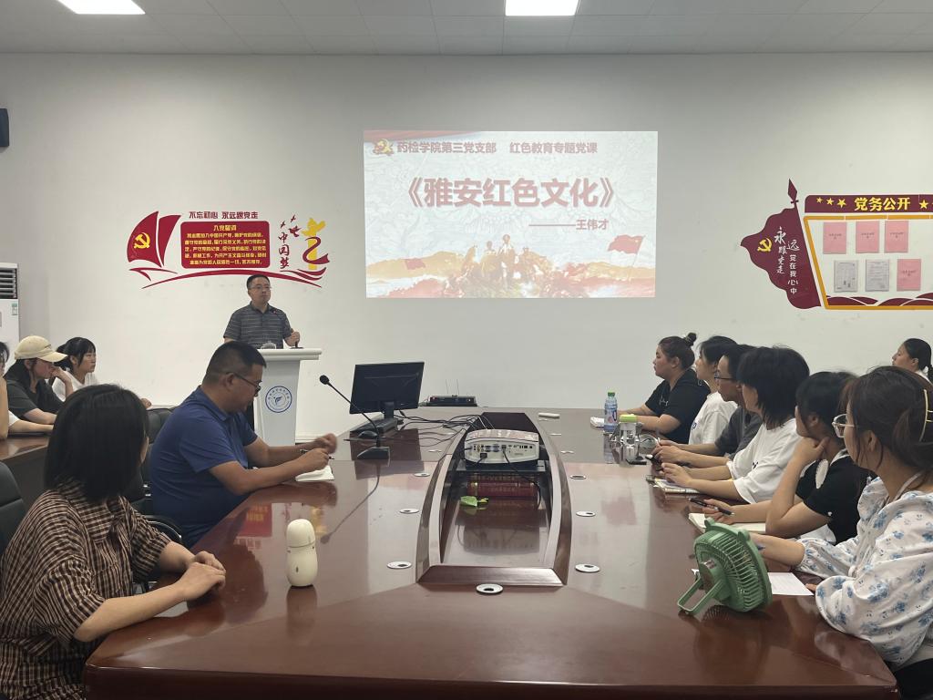 为进一步传承红色基因、赓续红色血脉,永利集团304官网第三党支部于6月13日在经开区校区药检公司大会议室开展《雅安红色文化》专题讲座;专题讲座由党总支书记王伟才主讲,第三党支部党员代表、员工入党积极分子代表、优秀员工代表共计71人参加专题讲座学习。