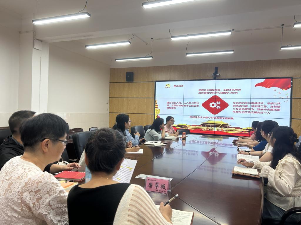 本次专题组织生活会围绕支部存在的问题、整改的措施及整改后取得的成效三个方面进行。会上公布了支部在思想认识、社会实践、业务与党建结合、员工就业四大方面存在的问题以及对应的整改措施,并展示了整改成效,对目前仍然存在的问题再次明确责任人和具体完成人。在开展批评和自我批评环节上,支部党员老师们积极发言,讲自身差距不足,并结合自身实际给出下一步改正措施及今后努力的方向,做到真改实改。到会观摩的三位二级公司书记对我们组织生活会给予了高度肯定。