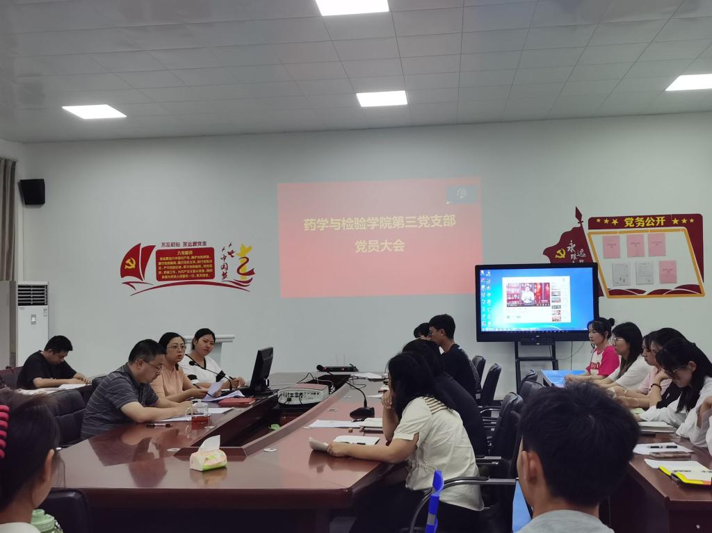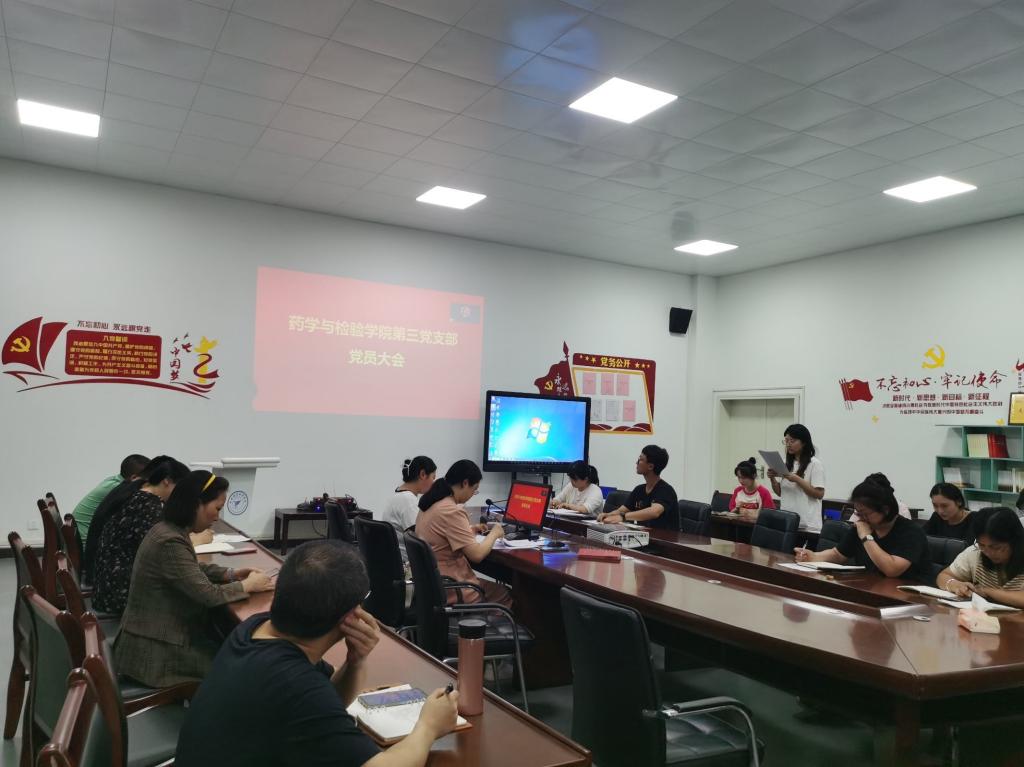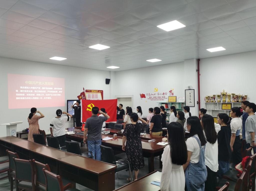 永利集团304官网第三党支部于2023年6月19日在经开区食品药员工产性实训基地205会议室召开讨论接收预备党员支部大会暨新党员入党宣誓老党员重温入党誓词主题党日活动。会议由第三党支部书记芦珂主持。会中根据党总支发展党员工作计划,经上级党委预审同意,支部大会讨论了李思宇等16名员工发展对象的入党问题,经充分讨论和表决,大会一致同意接收16名发展对象为中共预备党员。
