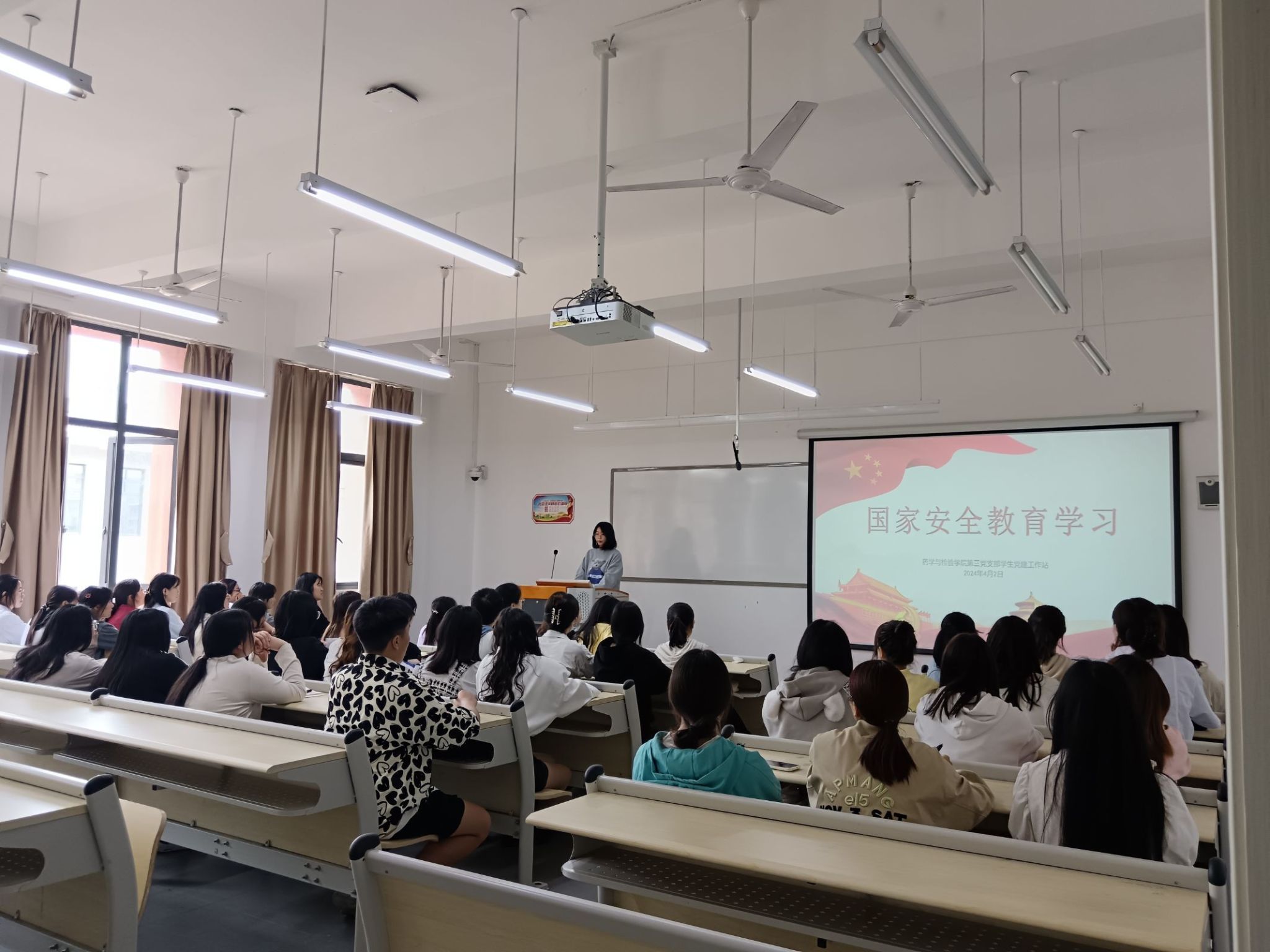 2024年4月2日中午,第三党支部组织入党积极分子47人在经开区校区5304教室开展集中学习活动;学习活动由第三党支部员工党建工作站理论宣讲员王钰婧领学,学习内容有国家安全教育、党员网络行为规定和新修订的《中国共产党纪律处分条例》。