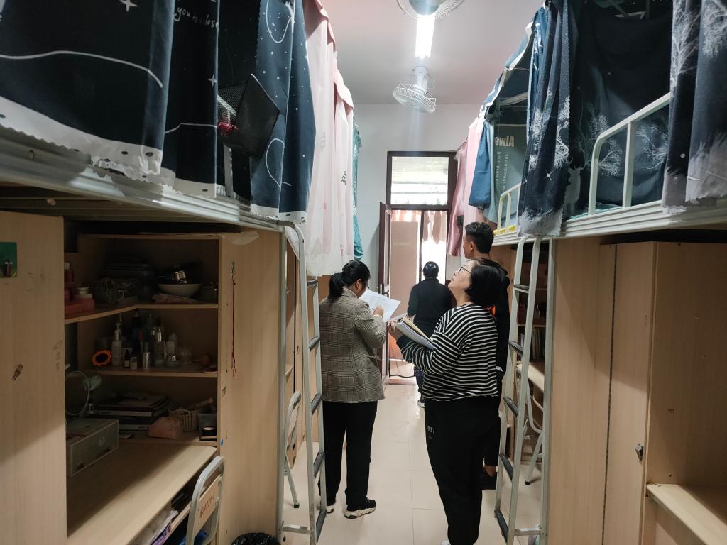 老师们分成两组进行走访,仔细核对各寝室日常检查结果,评选出11间优秀寝室,推荐员工处参加“文明寝室”评选。