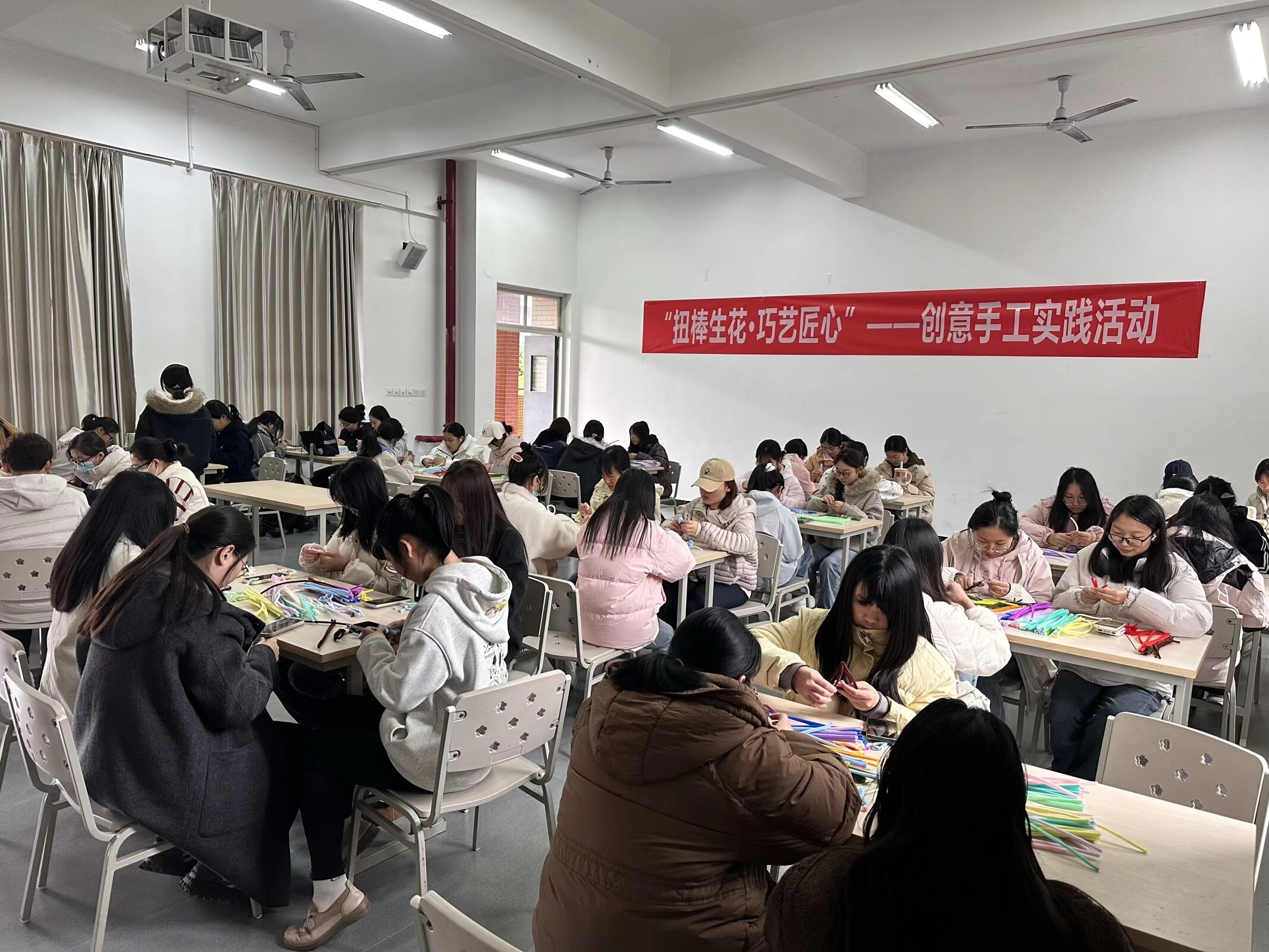 为丰富校园文化生活,提升员工的动手能力、创新思维与团队协作精神,11月18日,永利集团304官网于经开区校区2302教室成功举办了“扭棒生花,巧艺匠心”扭扭棒创意手工实践活动。活动吸引了65余名同学踊跃参与,现场气氛热烈,创意纷呈。