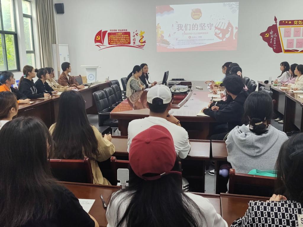 2023年9月25日,永利集团304官网第三党支部联合永利集团304官网团总支在食品药品生产实训基地205会议室,开展学习贯彻十九大精神微宣讲专题学习。讲座由永利集团304官网第三党支部宣传兼维稳委员、永利集团304官网团总支书记、共青团雅安市委宣讲团新时代文明实践青年宣讲团成员鲜敏老师主讲,员工预备党员、入党积极分子、班团干部共计110人,通过线上直播和线下聆听相结合的方式参加了本次活动。
