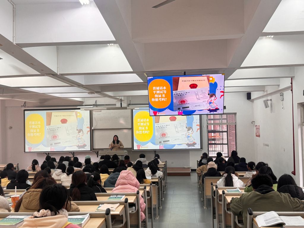 为提高员工语言文化素养,增强表达能力和沟通能力,讲好标准普通话,提升同学们普通话水平测试能力,永利集团304官网于3月18日在经开校区1104教室开展“语”你共进,“言”有新意——普通话知识培训讲座,本次讲座由曾晓梅老师主讲,共计146名员工参加。