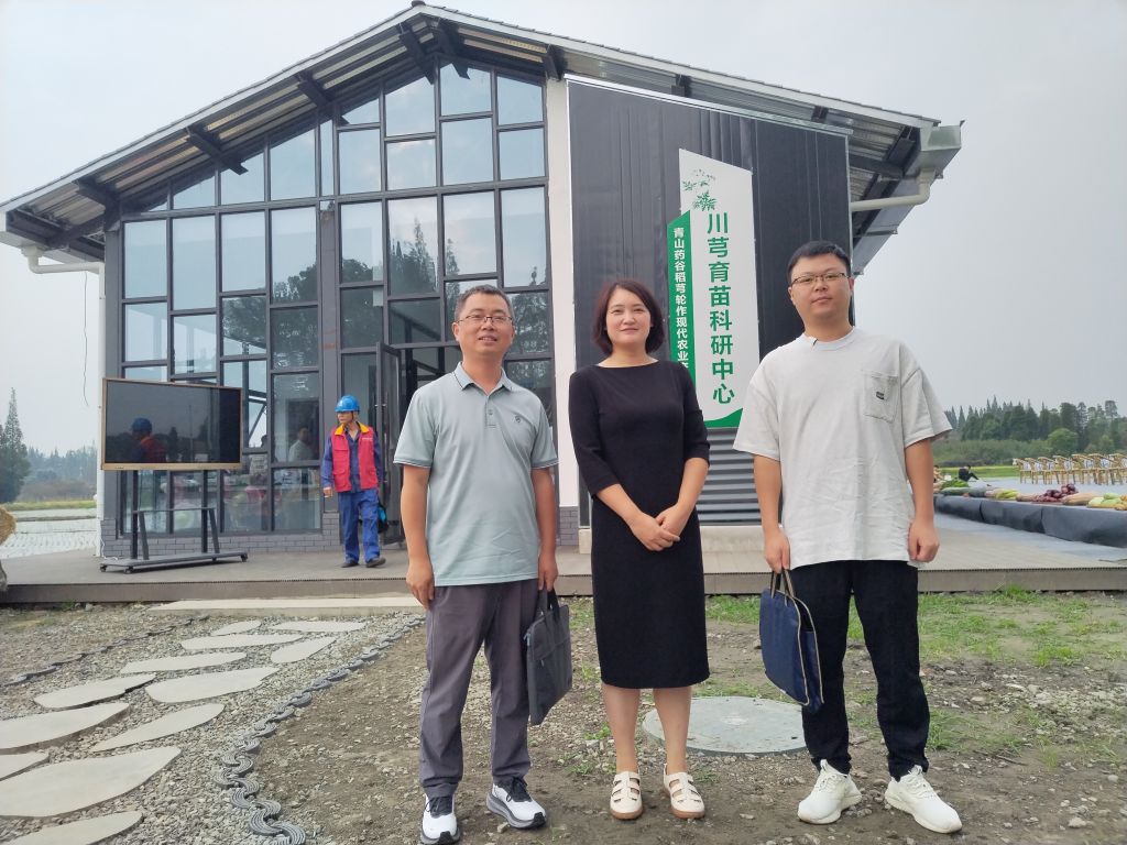 在青山药谷乡村中医药文旅科技产业园,作为此次丰收节的举办地,三位老师与石羊镇农业综合服务中心的于磊主任,就川芎育苗技术、川芎脱毒苗技术及川芎芽苗菜开发等议题,进行了全面而深入的探讨与交流。