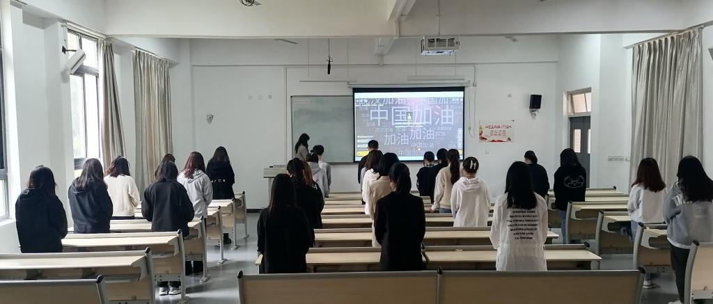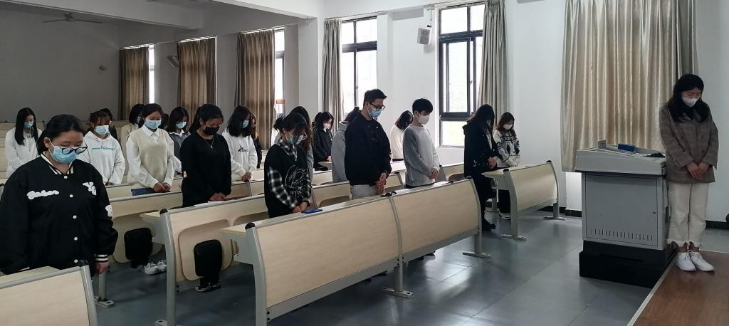 在活动开始前10分钟,志愿者自觉佩戴口罩,并穿黑色或者白色服装到达现场以表肃静,并在教室依次隔空坐下。活动开始,在吴靖杰同学的主持下,志愿者同学们打开手机关注“清明云扫墓”微信公众号,进行线上祭奠英雄先烈,随后主持人带领志愿者依次对九一八事变中英勇牺牲的先烈们、疫情中失去生命的百姓和医护人员、近日失事的航班MU5735以及平凡而又伟大的奉献者们进行默哀并点亮蜡烛赠送祭奠品,对于志愿者们来说这不仅是缅怀,是思恋,更是激励。活动的最后吴靖杰同学动情地说:“虽然因为疫情我们不能回家扫墓,遥思祭奠先人和过人,但只要心意在情感在,清明祭祀的意义就在!”