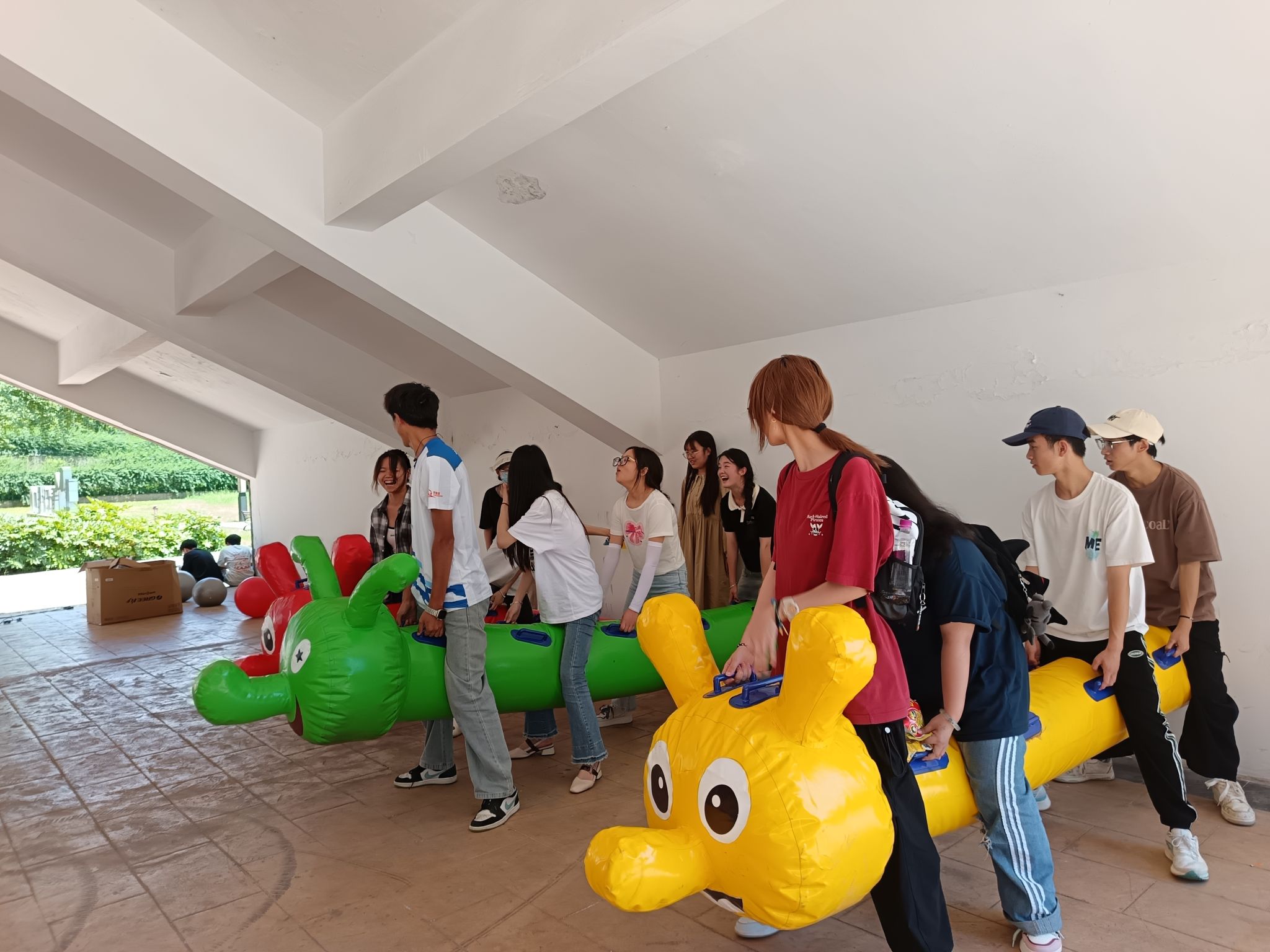 活动当天,工作人员早早到场,精心准备各类活动道具,确保游园会顺利进行。活动现场设置了“端午同心鼓”“福气传运球”“旱地龙舟”、“端午套福气”等多个趣味游戏环节。活动现场气氛热烈,欢声笑语不断。同学们积极参与各类游戏,表现了极高的热情。