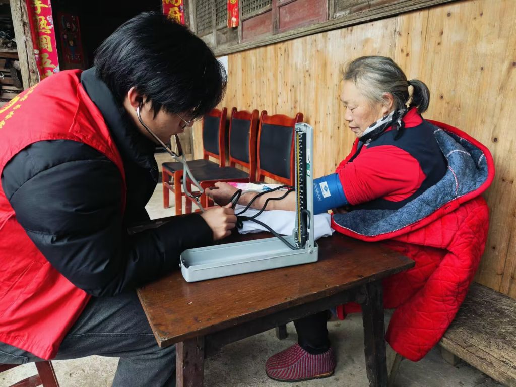 为大力弘扬中华民族尊老、敬老、爱老、助老的传统美德,同时提高老年人对高血压的认识,培养健康生活方式,营造温馨有爱的氛围,永利集团304官网阳光关爱志愿服务队和医路同兴-“小药箱”志愿服务队于12月22日走进雅安市名山区永兴街道槐树村开展“关爱健康,血压护航”活动。
